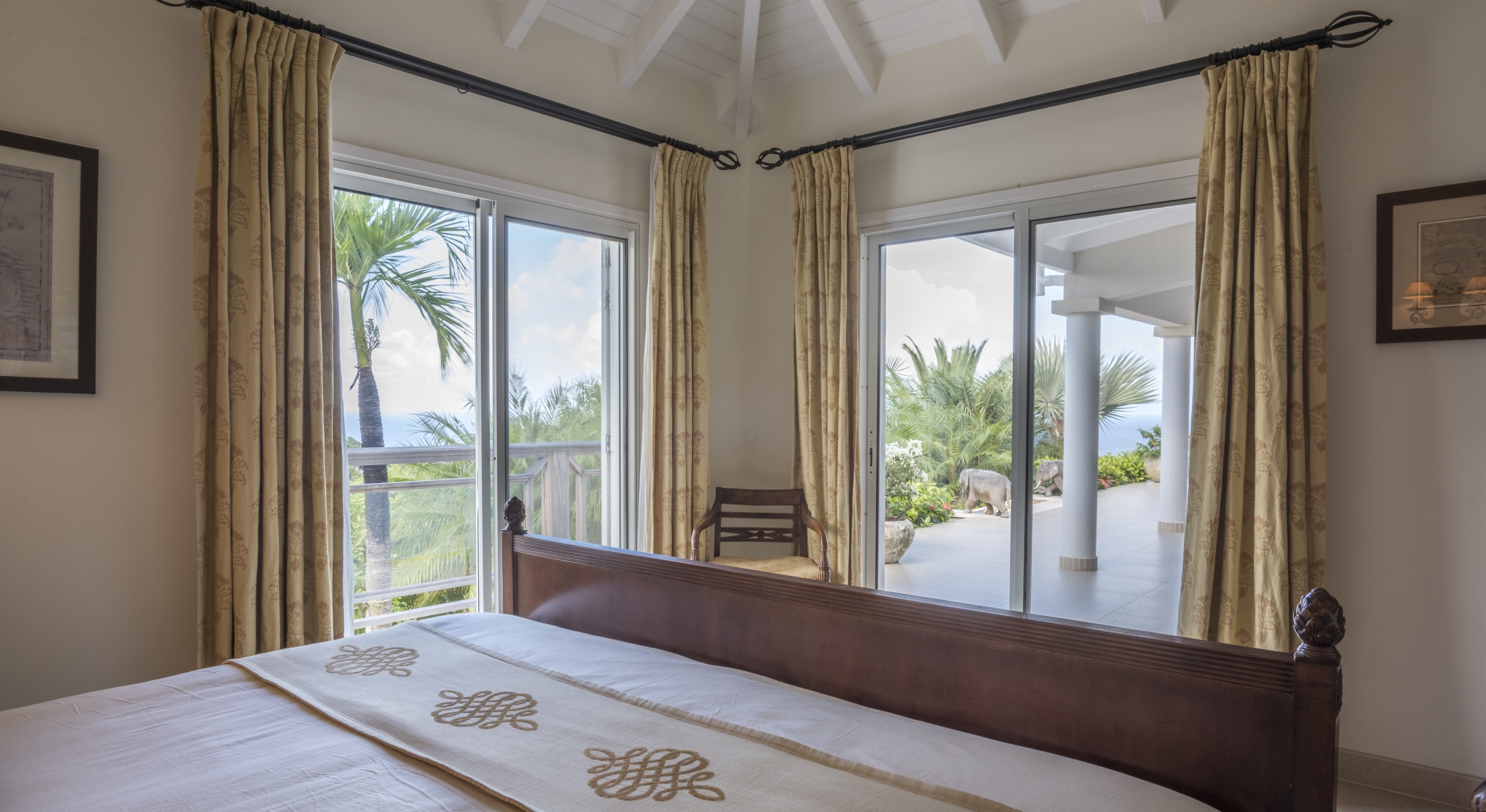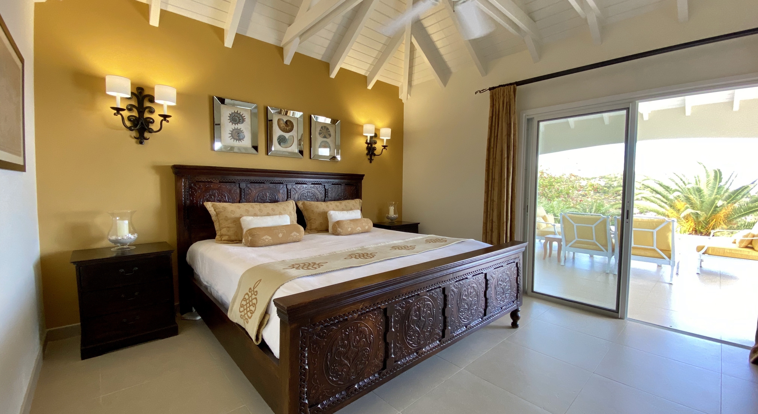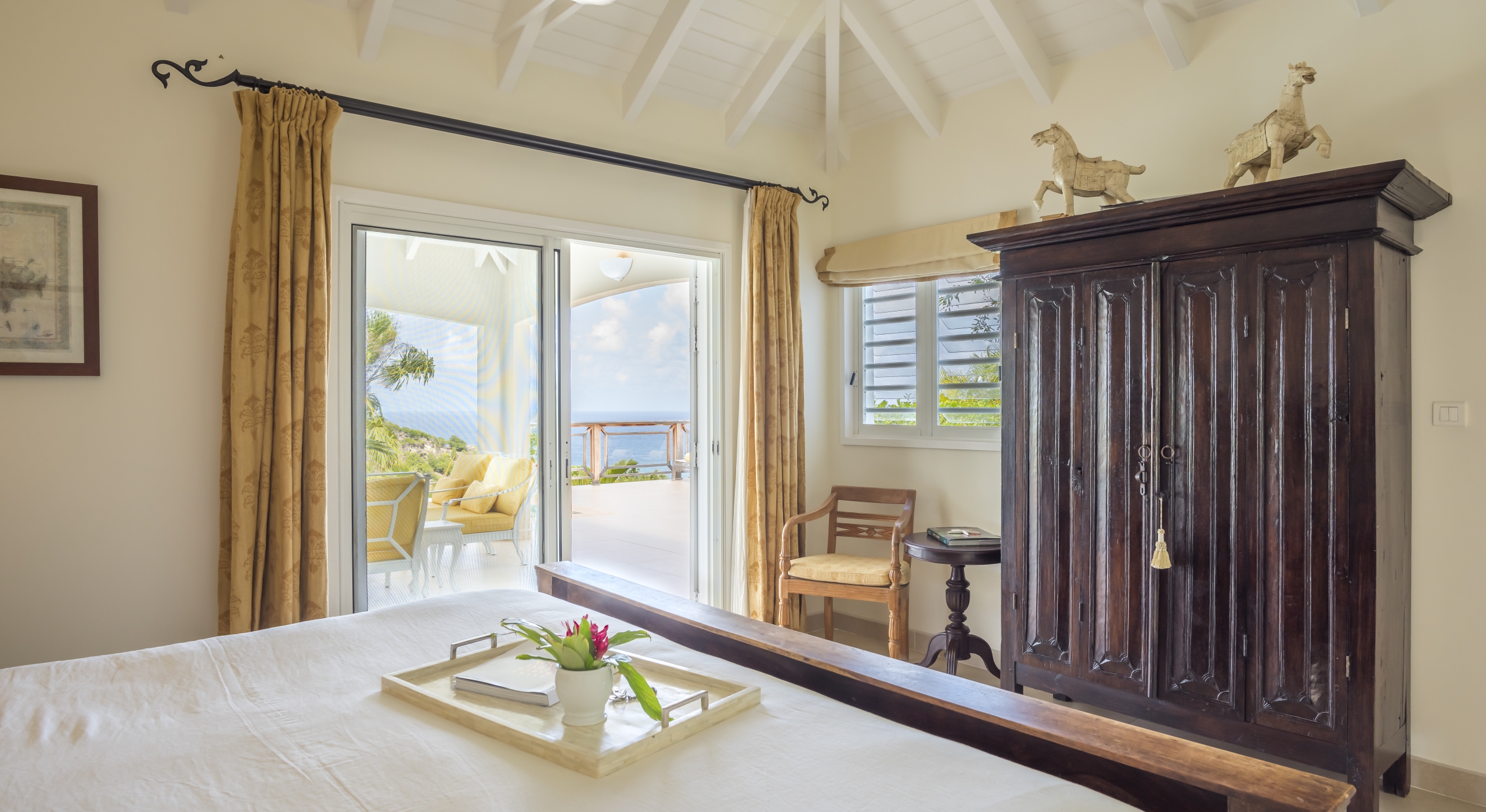 The main bedroom on the main floor is accessible by the terrace.