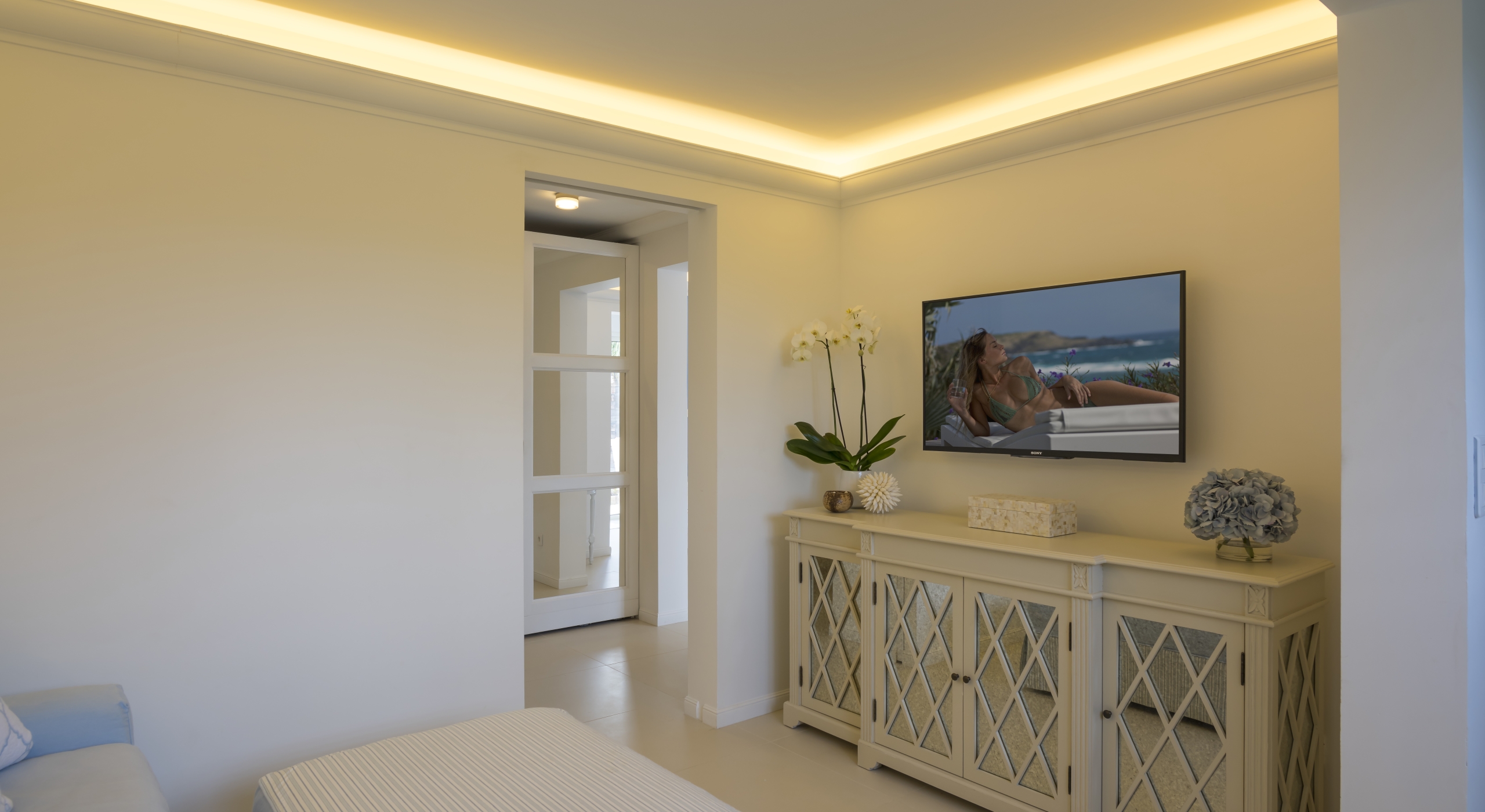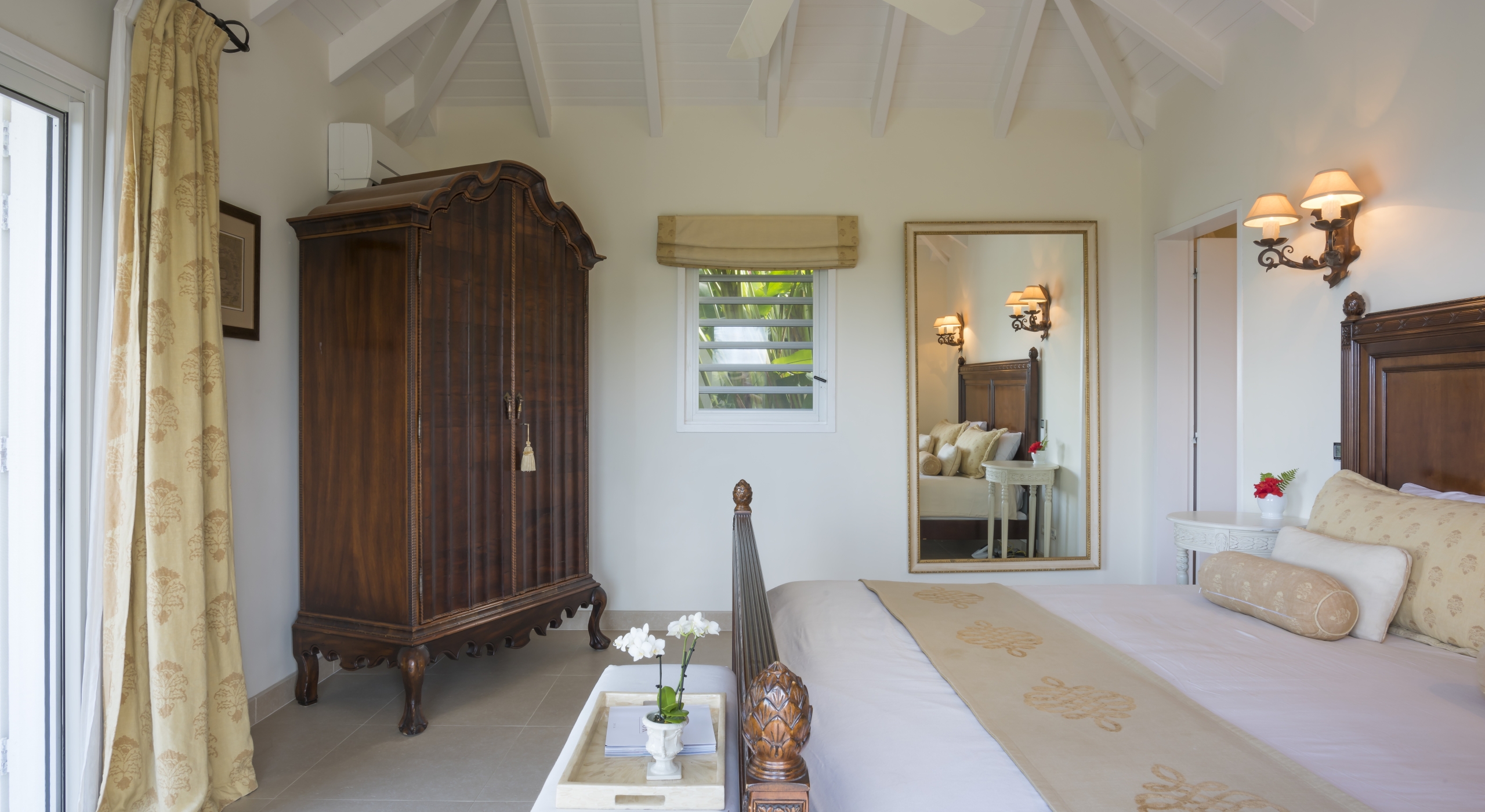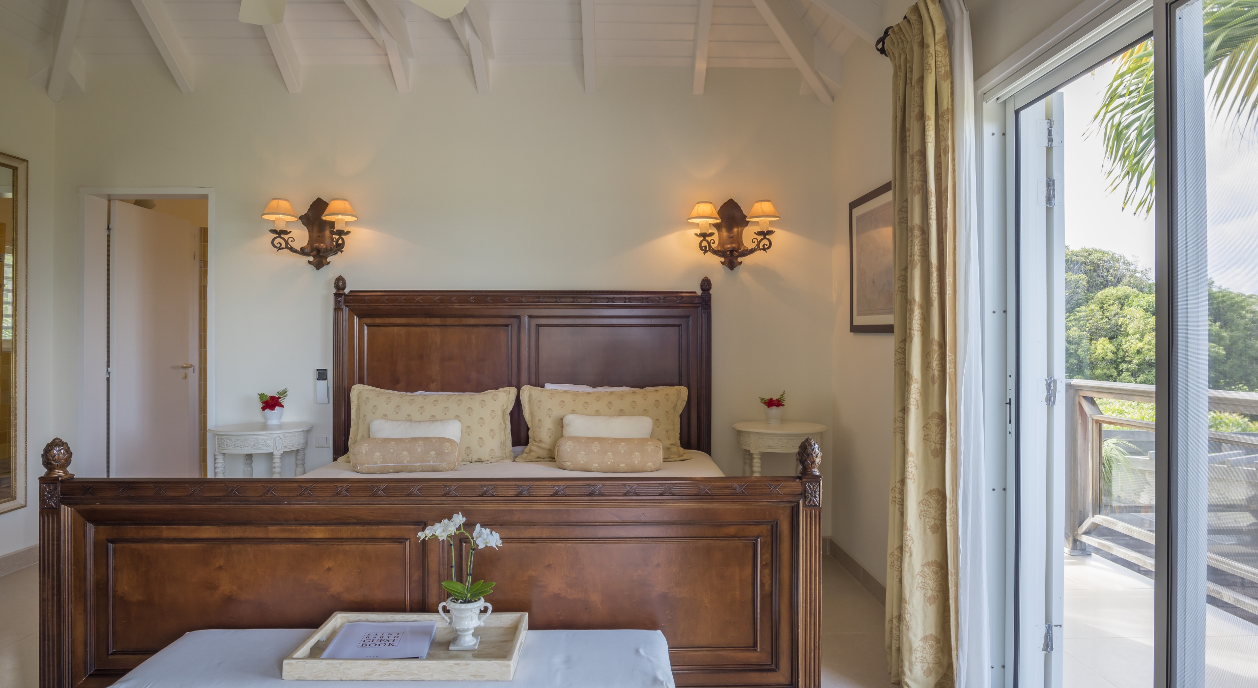 The main bedroom on the main floor is accessible by the terrace.